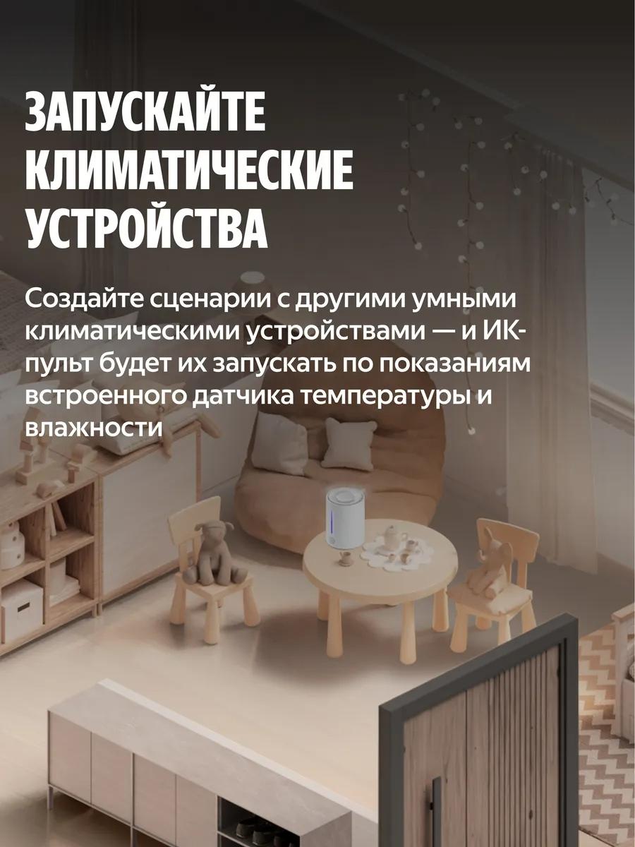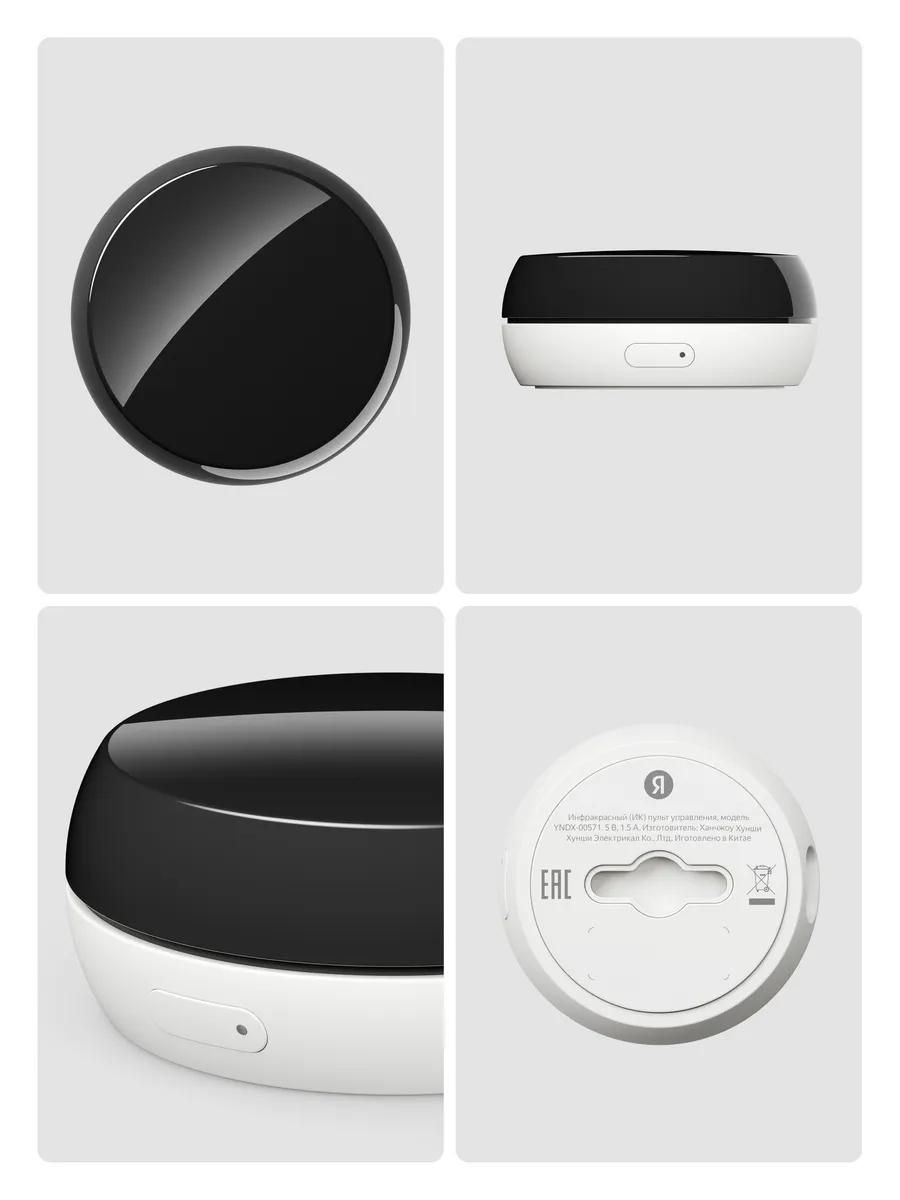 Умный ИК-пульт Яндекс YNDX-00571 — современное устройство для «умного дома», которое объединяет функции универсального пульта и встроенных датчиков температуры и влажности. С его помощью можно управлять бытовой техникой с ИК-пультом, такой как телевизоры, кондиционеры, обогреватели, вентиляторы и другое оборудование, а также отслеживать микроклимат помещения и автоматически запускать устройства по заданным сценариям.